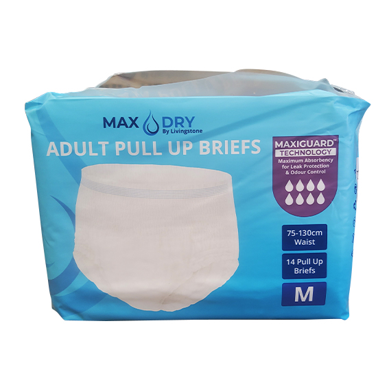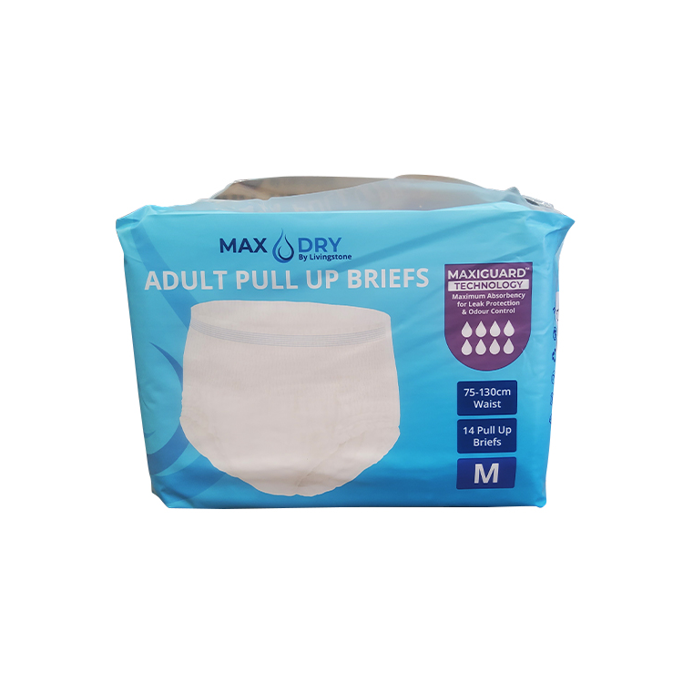 Livingstone Max Dry Adult Pull Up Diaper Pants, 2,000mL, Cotton Feel, Super Absorbent, 75-130cm Waist, Medium, 14 Pieces/Bag, 84 Pcs/Ctn