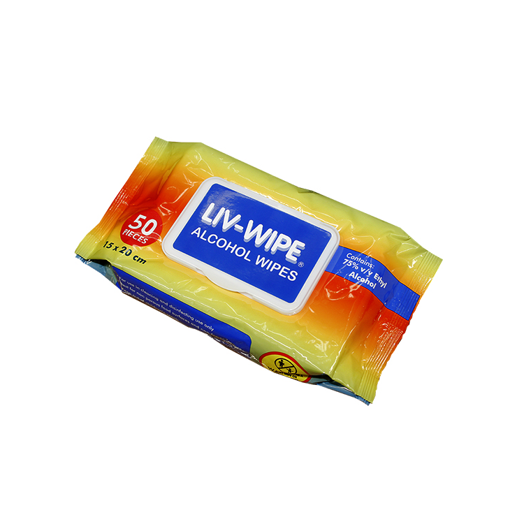 Liv-Wipe Antibacterial Alcohol Wipes, 75% Ethyl Alcohol Sanitiser, 15 x 20cm, 45GSM, Nonwoven, 20% Viscose, Snap On Lid, 50 in Soft Pack