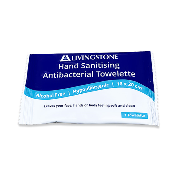Livingstone Hand Sanitising Antibacterial Towelette Wipe, 16 x 20cm, 1 Piece/Pack