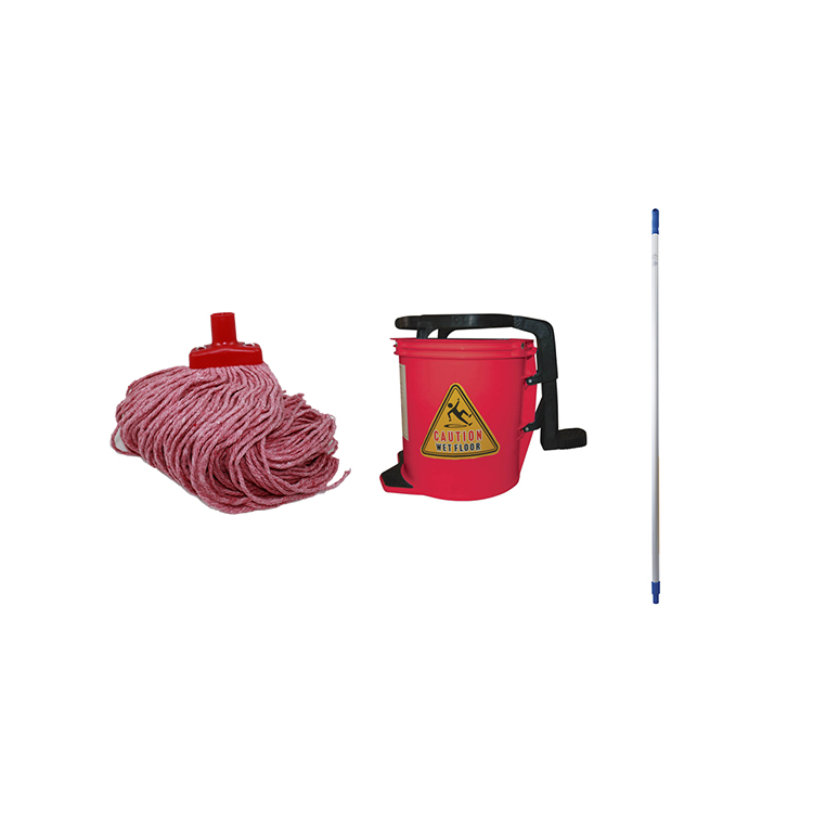 The mop and Bucket set features a 400g mop head with an aluminium mop handle, and a round wringer bucket. The ideal set for general cleaning. Colour coded for hygiene.
