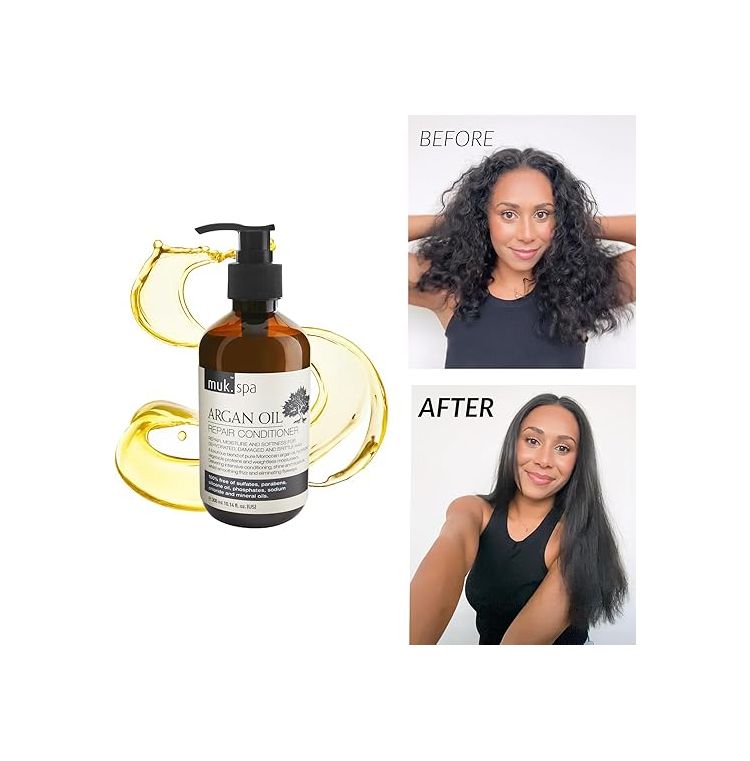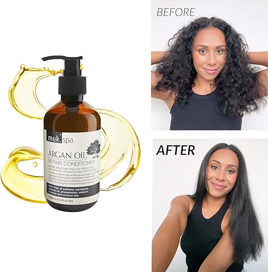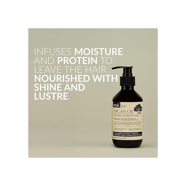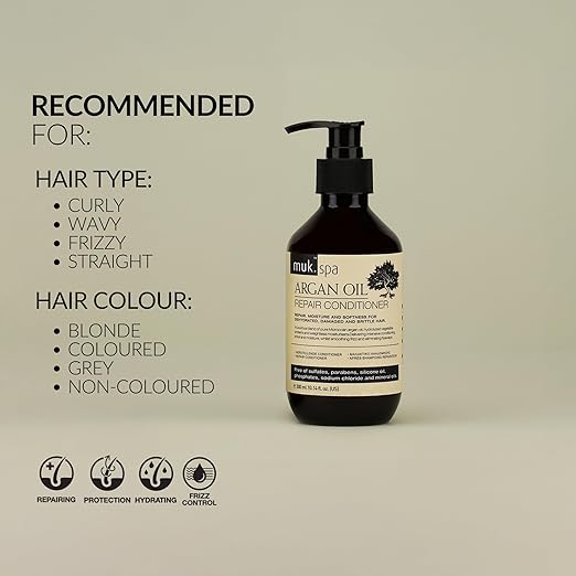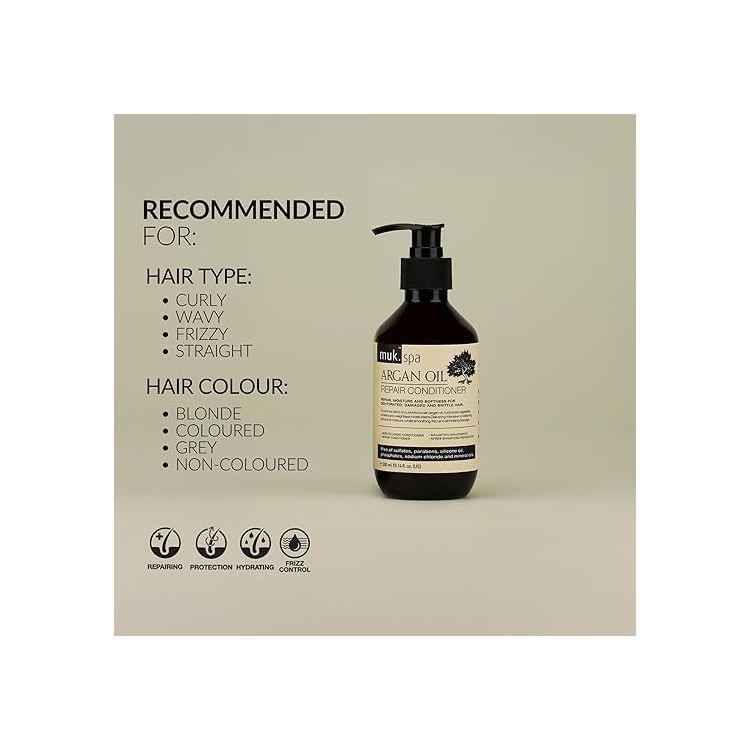 Containing a luxurious blend of pure Moroccan Oil, this beautiful conditioner repairs, moisturises and softens dehydrated, damaged and brittle hair. Provides intense conditioning, shine and moisture whilst smoothing frizz and eliminating flyaway hair. DOES NOT CONTAIN Sulfates, Parabens, Silicone Oil, Phosphates, Sodium Chloride or Mineral Oils.\n
