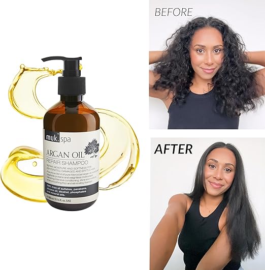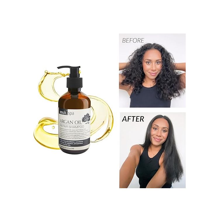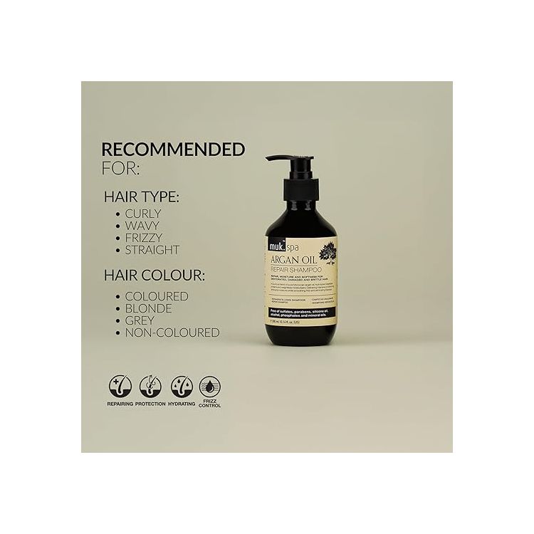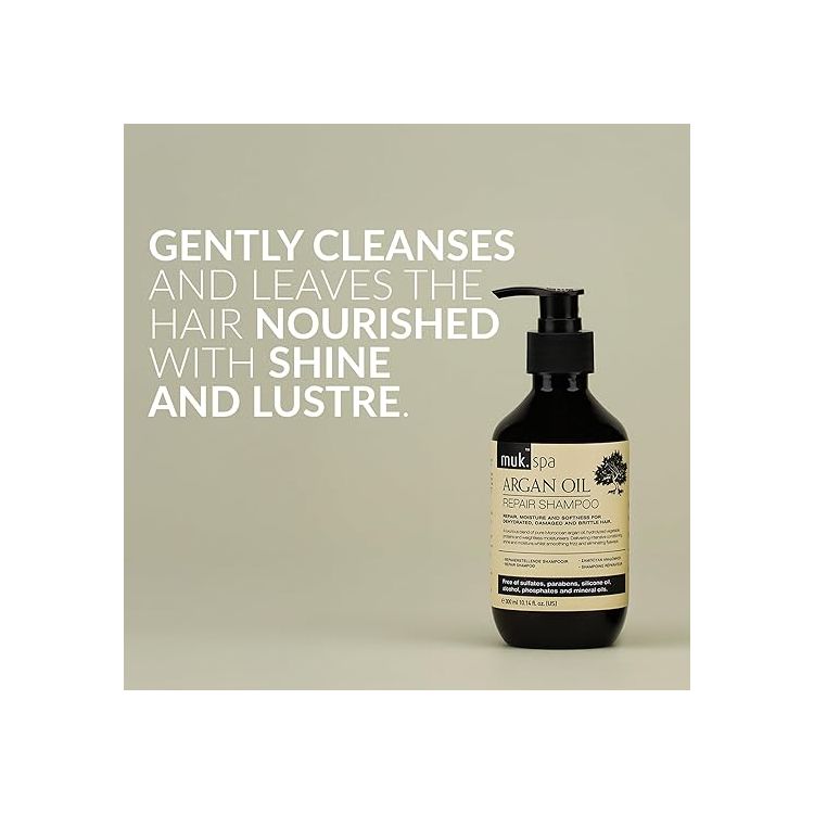 Containing a luxurious blend of pure Moroccan Oil, hydrolysed vegetable proteins and weightless moisturises, this shampoo repairs, adds moisture and softness for dehydrated, damaged and brittle hair. DOES NOT CONTAIN Sulfates, Parabens, Silicone Oil, Alcohol, Phosphates or Mineral Oils.\n