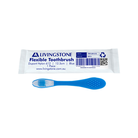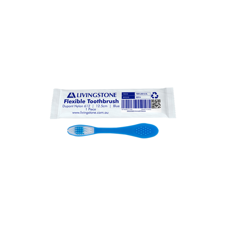 Livingstone Flexible Toothbrush, Dupont Nylon 612, 12.5cm, Blue, 1 Piece/Paper Bag