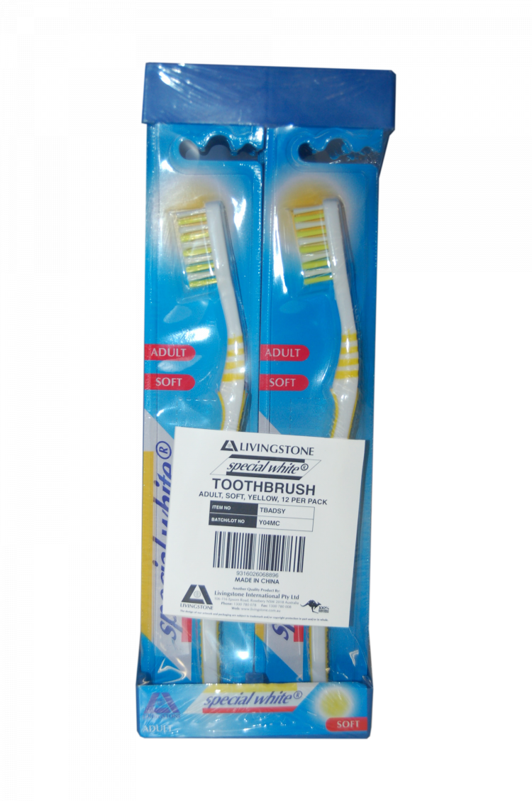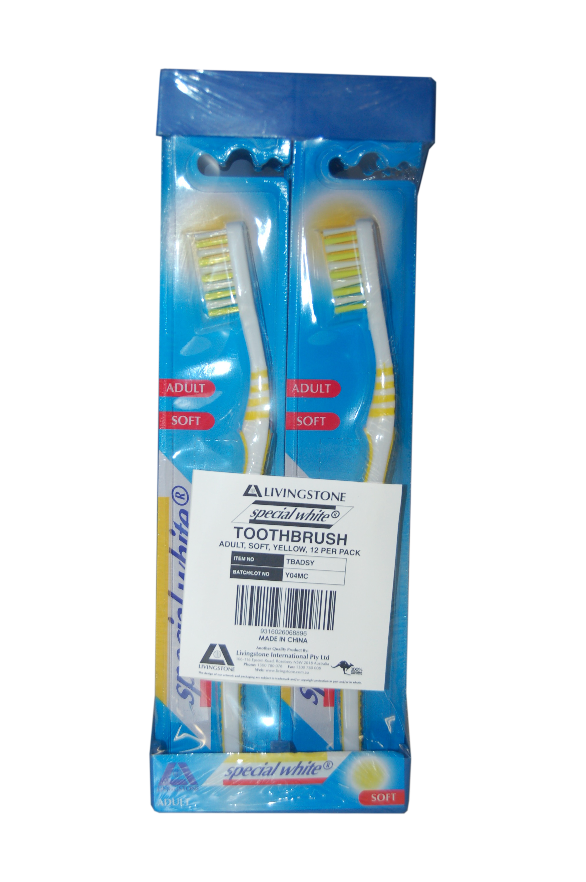 Livingstone Special White Toothbrush, Adult, Soft DuPont USA Bristles, Yellow Colour, 12 per Pack