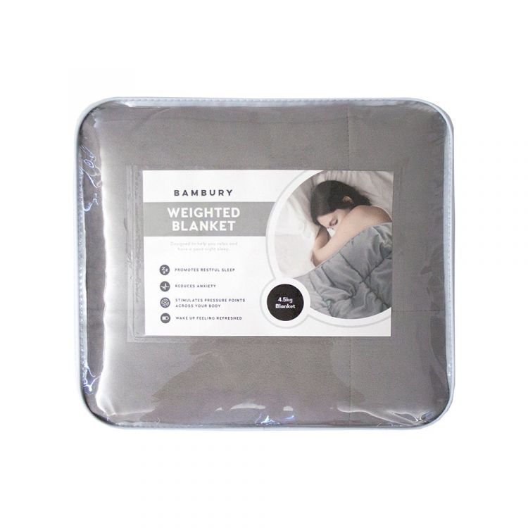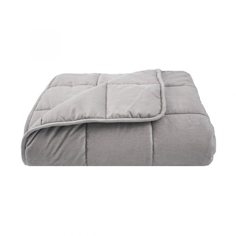 This blanket applies weight to your body's pressure points in order to help promote the production of sleep hormones. It is designed to feel like you are being wrapped in a big cosy hug, which can promote relaxation and help reduce anxiety - hopefully leading to a better, and calmer night's sleep! Weighted blankets have also been used by people with Sensory Perception or Autism Spectrum disorders. The blanket is significantly weighted, it is filled with glass beads, and because of this it is not machine washable, however our blanket can be covered with any single-sized quilt cover to help protect it from marks and spills. One side of this grey coloured blanket has a soft plush finish and the other side is a flat cotton weave fabric. There are three blanket weights that are available, and users must select a blanket weight according to the body weight of the user: 4.5kg (25-55kg) The blankets are designed for one person only and are not to be used by infants or small children, please refer to instructions carefully.