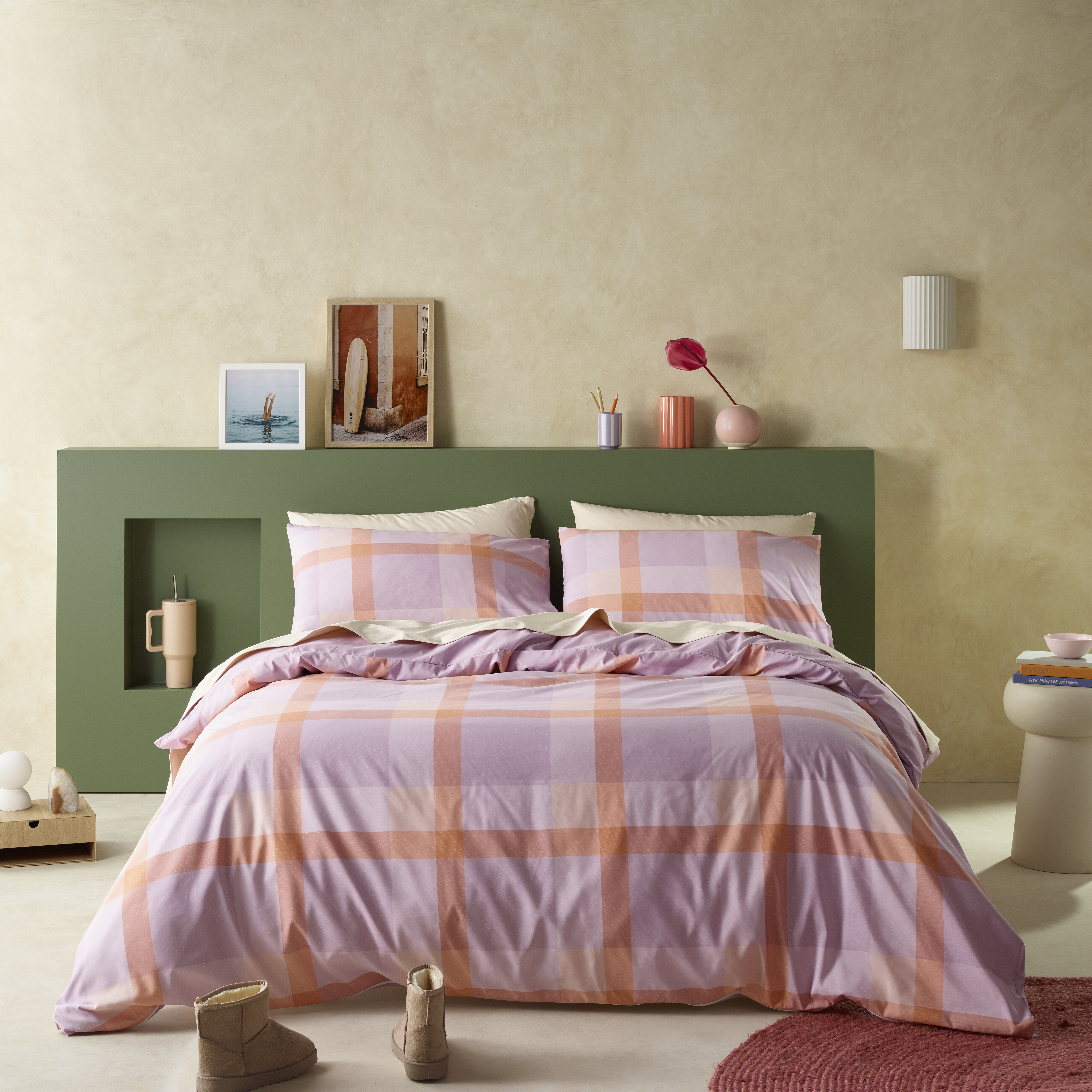 Staydry Lilac Blush Check Quilt Cover Set Single Bed