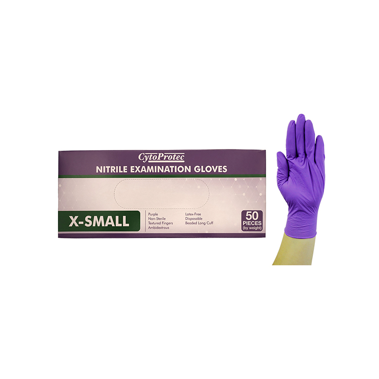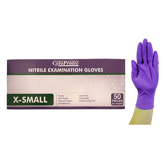 CytoProtec Extra Thick Nitrile Examination Gloves, Powder Free, 5.5-6.0, Extra Small, Purple, Long Cuff, 50 Pieces/Box