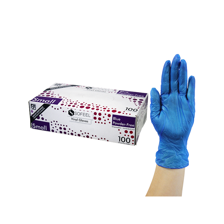 Sofeel Vinyl Gloves, Recyclable, 4.0g, HACCP Grade, Powder Free, Small, Blue, 100/Box