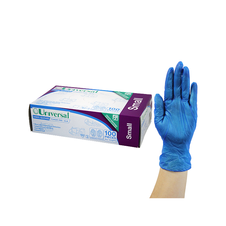 Universal Vinyl Gloves, Recyclable, 4.5g, HACCP Grade,Powder Free, Small, Blue, 100/Box