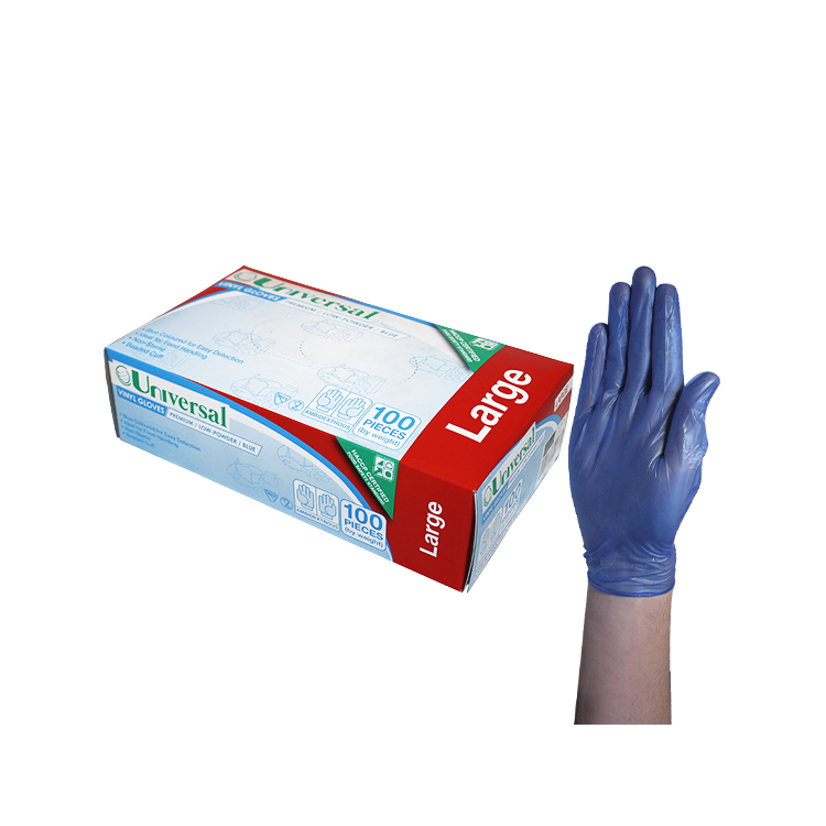 Universal Vinyl Gloves, Recyclable, 5.5g, HACCP Grade, Low Powder, Large, Blue, 100/Box