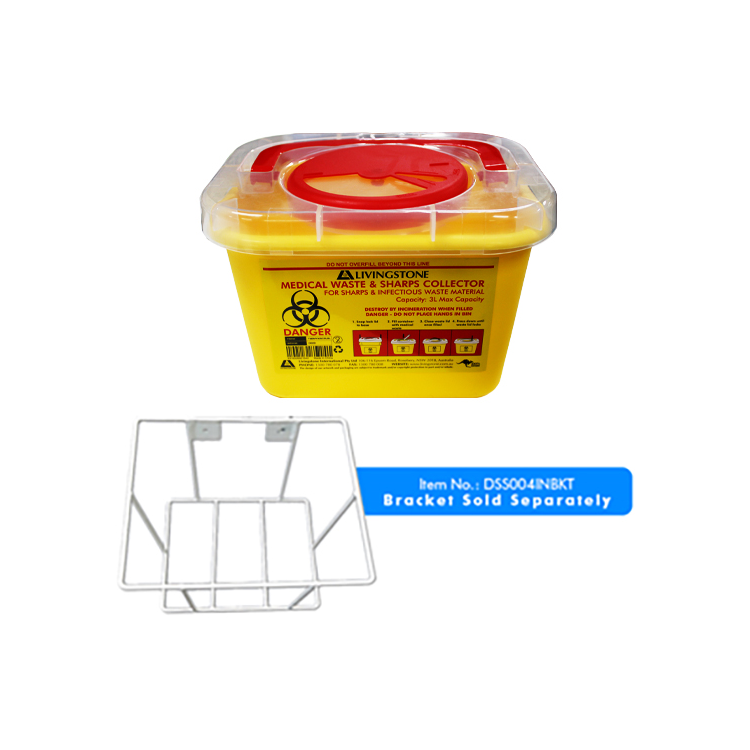 Capacity: 3 Litres Overall, 2.9 Litres to Fill Line. Dimensions: 20 x 16 x 13.5cm,The standard yellow one piece containers come preassembled and designed to meet the needs of a variety of clinical settings. Fits Bracket DSS004INBKT. Bracket Sold Separately.