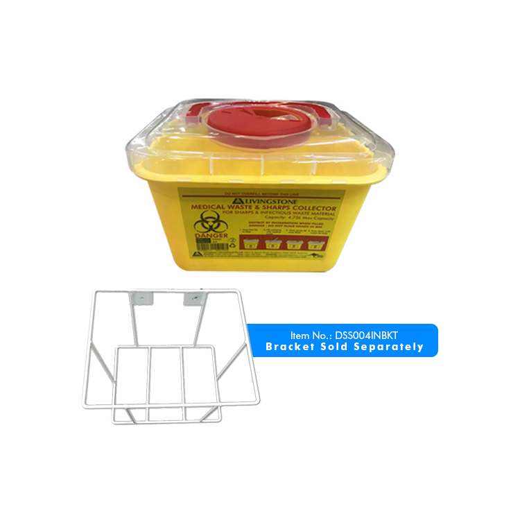 Capacity: 4.75 Litres Overall, 4 Litres to Fill Line. Dimension: 245 x 200 x 165 mm. Has a Clear View Top. These strong and resistant puncture resistant bind have been designed for the safe disposal of clinical waste of sharp objects such as hypodermic needles, syringes and broken bottles, etc. Fits Bracket DSS004INBKT. Bracket Sold Separately.