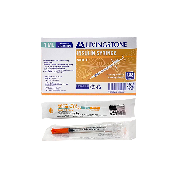 Livingstone Insulin Syringes are specifically designed to ensure safe and accurate administration of U-100 insulin. Each syringe features a smooth-operating white plunger and a precision-attached needle, allowing for consistent and comfortable injection. Manufactured from high-quality thermal bond materials, these syringes offer both reliability and durability. Ideal for medical professionals and home users alike, they are a trusted choice for managing diabetes with confidence and care.