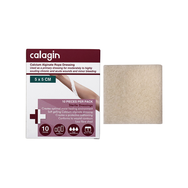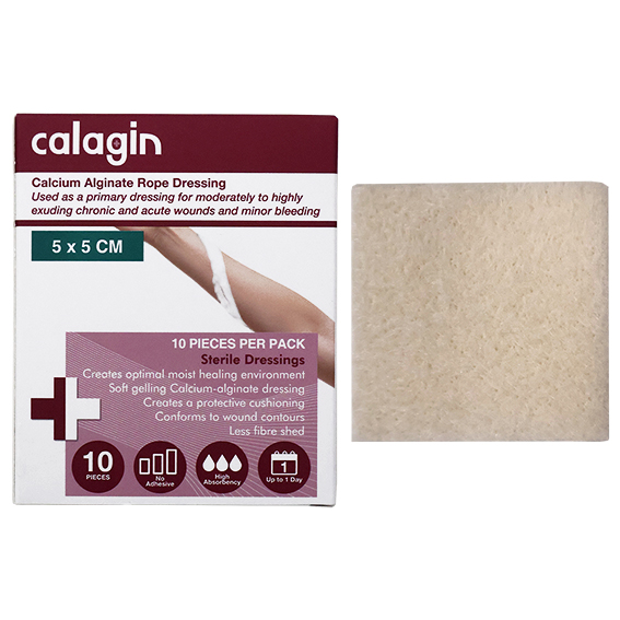 Calagin Calcium Alginate Haemostatic Dressing, 5 x 5cm, Sterile, Non-Adherent, 10 Pieces/Box