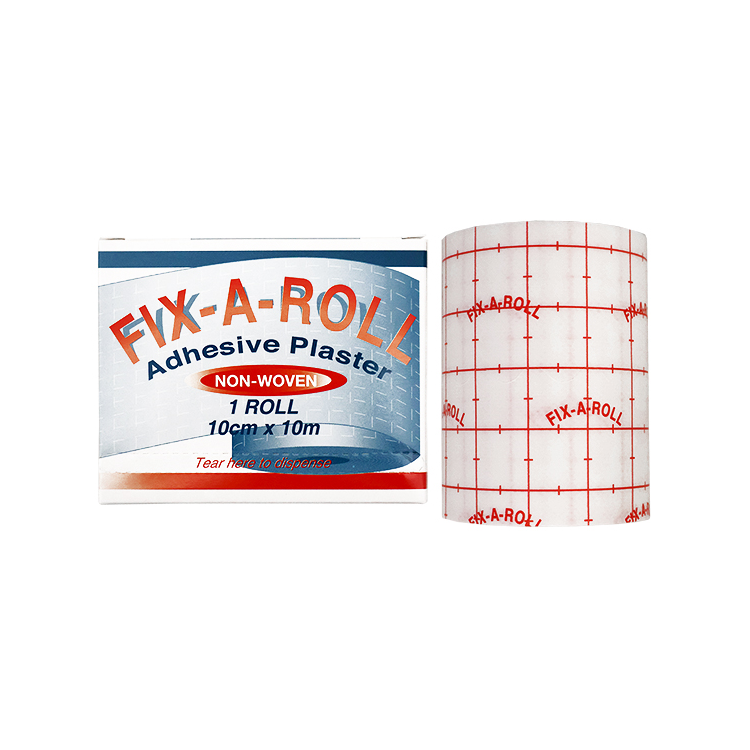 Conformable, Adhesive Dressing Fixation Retention Tape Plaster. Fix-A-Roll is a self-adhesive, nonwoven fabric sheet for secure, fast and wide area dressing fixation. It is made from cross elastic nonwoven fabric and nonwoven tape (polyester) coated with hypoallergenic adhesive. Has easy-to-remove backing paper which allows convenient application. Can easily cut to required shape and size and no unnecessary wastage. Provides excellent conformability which simplifies shaping even around on difficult joint areas and awkward body contours. High air vapour permeability and low allergy adhesive (Polyacrylate). Gentle to the skin and allows infection free wound healing. Fix-A-Roll is also radio transparent, so it does not have to be removed for either radiotherapy or X-ray examinations. Painless removal and no sticky residue. Benefits: Combines security with comfort, highly conformable. Provides reliable fixation for catheters and drainage tubes. Reduces risks of casual contamination. Allows