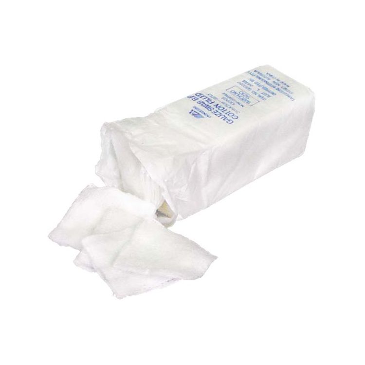 The gauze swab is filled with absorbent cotton to increase the amount of liquid it can absorb and hold. This will reduce the frequency of changing swabs in cases of large fluid volume. Features highly permeable outer gauze and cotton inner material.