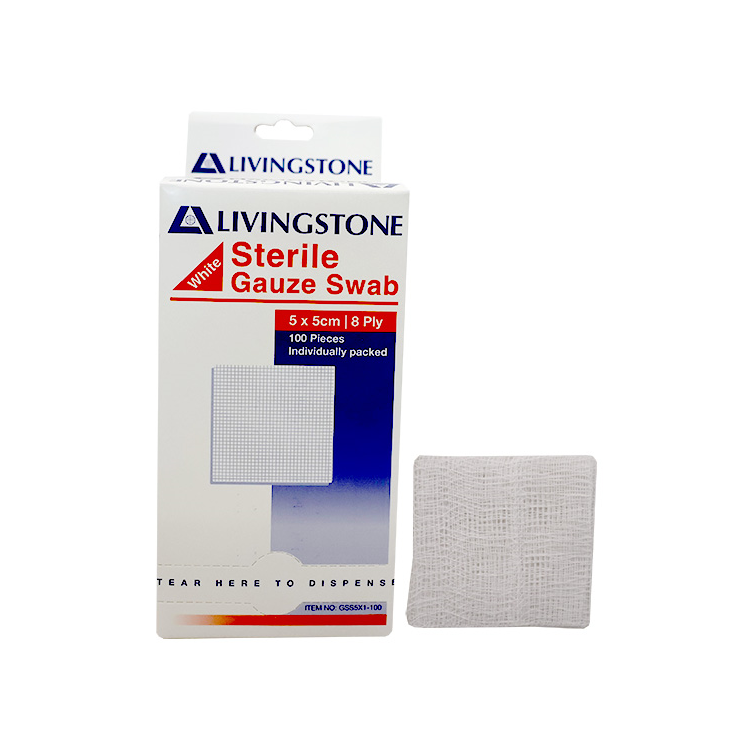 Liv Gauze Swabs, 5 x 5 cm x 8 ply, 100 Percent Cotton, Sterile, White, 1 Piece/Pack, 100 Packs/Dispenser Box