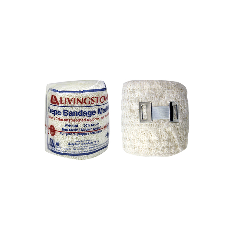 Livingstone Crepe Bandage with Clips, 5cm x 4m, Medium Weight, All Cotton, Wrinkled, 12 Pieces/Pack